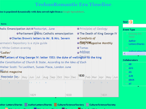 Frankenstein Timeline of Events Our general timeline of events 1780-1840 (created by students) Our list of Online Resources for TechnoRomanticism (created by students)