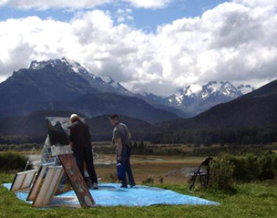 Above: Joel takes a picture of the rest of the TWs kicking back after a long day - and an artist that was painting the scenery