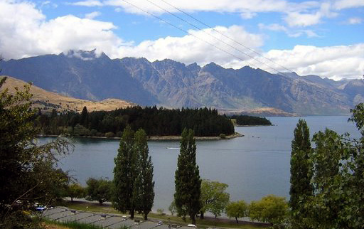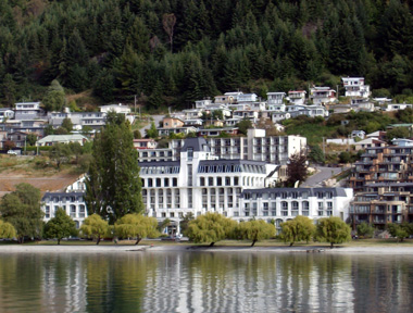 of the Rydges Hotel where we stayed for Eco as seen from the Queenstown peninsula.