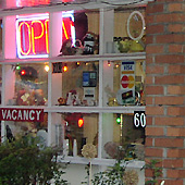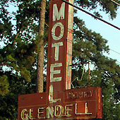 Click thumbnails to see fullsize images Visiting Arkansas, you should plan to slow down in Hot Springs, noted by its ornate bathhouses where turn-of-the-century tourists would “take the waters.” Predictably, many of the tourist courts on either side of the city center suffer the ravages of prostitution and drug use. For a lover of genuine mom and pop stops, there are several nice choices, though. You might enjoy the Victorian embellishments that set the Tower Motel apart from most cookie-cutter chains, or you seek out the Fountain Motel that reflects a nearly perfect vision of streamline-moderne design. But, you should end your tour with the Cottage Motel on Park Avenue. While insects begin to practice their musical cacophony under a setting sun, pull into the court and meet Efren. Remember, though: he’s not only the owner; he's the "president." West Memphis, AR, Motel Postcard (click for larger view) All text copyright Andrew Wood. Photos copyright Jenny Wood and Andy Wood.