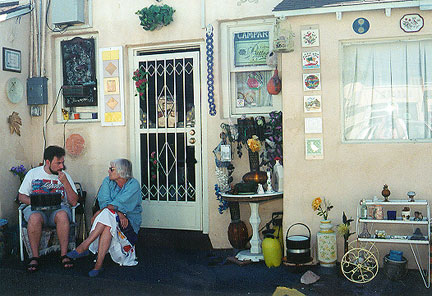 Duck under an arch that appears to have been inspired by the Alahambra and you enter her library, bedroom, and sanctuary: "When I retired, I wanted to live in an art colony . . . but I found the colonies to be too commercial." A far cry from the colonies, she found Aztec in crisis: "the city was ready to tear it down; it was filled with drug dealers and hookers. Mahamed and I used to be out in the evening with machetes and stun guns, but he's intent on making this a decent place."