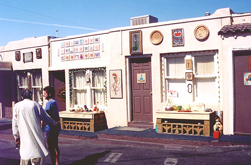 During our Summer 2000 trip, we spend extra time in Albuquerque, cityscape of colorful murals where even the garbage bins are painted with angular coyotes and Zuni symbols. We've got Weird Al Yankovic cranked up in the car stereo; his bizarre stream-of-consciousness trip to the Duke City has fired up our imaginations for our visit for months now. We're cruising down Central Avenue, about eighteen miles of classic Route 66 businesses and some of the best neon in the southwest. Naturally, we stop at the 66 Diner for tasty shakes and some gut-busting frito pie. Then, we're on the road again.