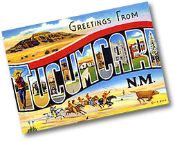 Nobody ever told us that Santa Fe was so beautiful! That was the first thing we learned after leaving Tucumcari. We detoured off the I-40 track to follow 66 north through Santa Fe then back down to Albuquerque. But Santa Fe was the real treat. We didn't get a lot of time to spend there but I was very impressed. With small, cozy streets, a charming plaza with a fiesta going on and buildings all in the Pueblo revival style, it felt like we had stepped into a Mexican Indian storybook. Even the State Capital building was the deep brown and boxed shape of an ancient pueblo home. I was really amazed by the beauty of it. We did have time to stop by the Information Center to get info on a nearby Pueblo and things to do in Albuquerque.