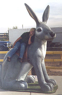 We left Holbrook after taking a family picture in front of our Wigwam, a tradition of ours, and continued westward toward California. Our first stop was to one of our favorite Rt 66 attractions, The Jackrabbit trading post. Featuring a large Jackrabbit in front that Vienna loves, this is a long-time 66 feature that is well known among the Route's crew. We bought some Jackrabbit souvenirs and took some pictures with the Jackrabbit. It was at that time that I noticed a problem with my camera. I was very sad to see that I wouldn't be able to take any more pics until I had it checked out. Luckily, we had taken pretty much all the important pics we would need on the trip. We bought a cheap instamatic at the next WalMart, just in case.