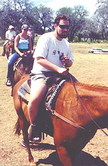 Andy is not real fond of the stuff but he enjoyed it as much as he could. After lunch (and another quick snooze), Vienna and I were off on another ride. This time it was hotter but we had fun. We were both on the same horses as in the morning and I seemed to get along better with Bolt. I took more control of him, guiding him back on track when he took me toward hazards. He seemed to appreciate the leadership and we got along fine.