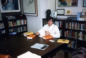 Louis Owens at San Jose State University in 1987, visiting what was then called the Steinbeck Research Center.